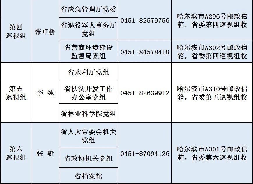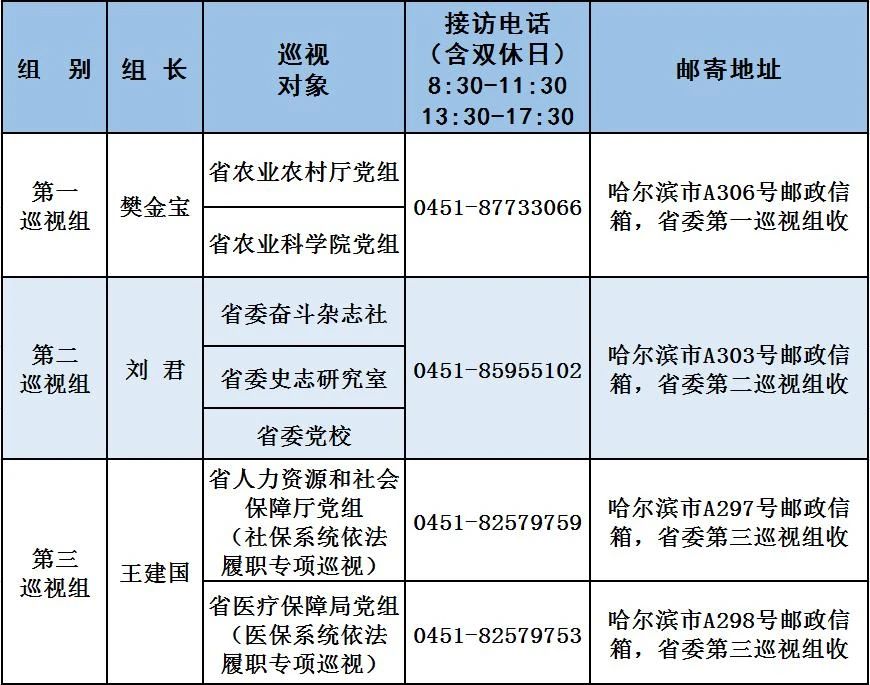 巡视期间,开展常规巡视的巡视组主要受理反映被巡视单位党组(党委)领导班子及其成员,以及下一级党组织领导班子主要负责人和重要岗位领导干部问题的来信来电,重点是关于违反政治纪律、组织纪律、廉洁纪律、群众纪律、工作纪律和生活纪律等方面的举报和反映。对医保、社保系统开展依法履职专项巡视的巡视组主要受理反映省医保局、省人社厅依法履职方面的问题和线索。受理信访时间以巡视公告为准。